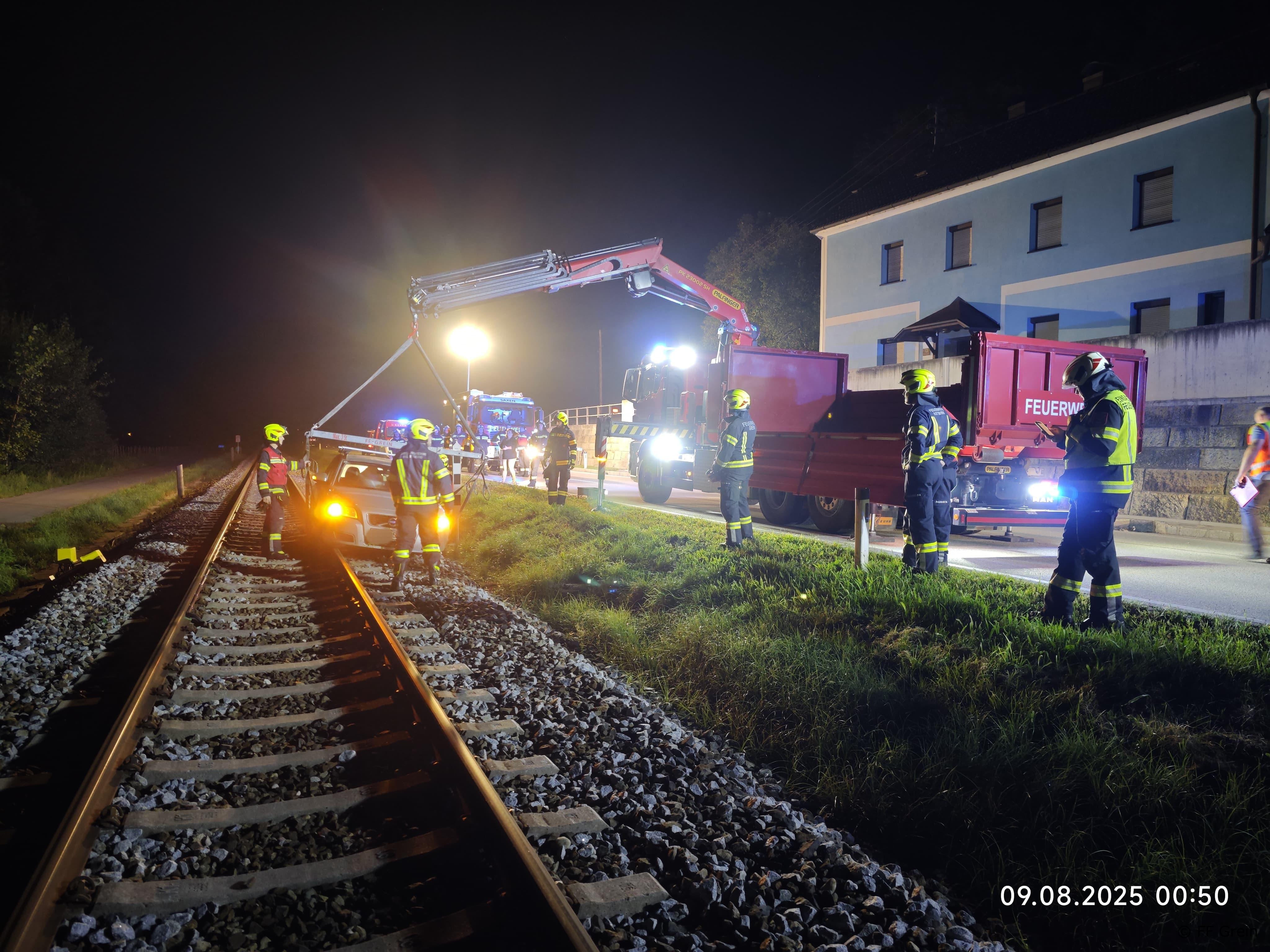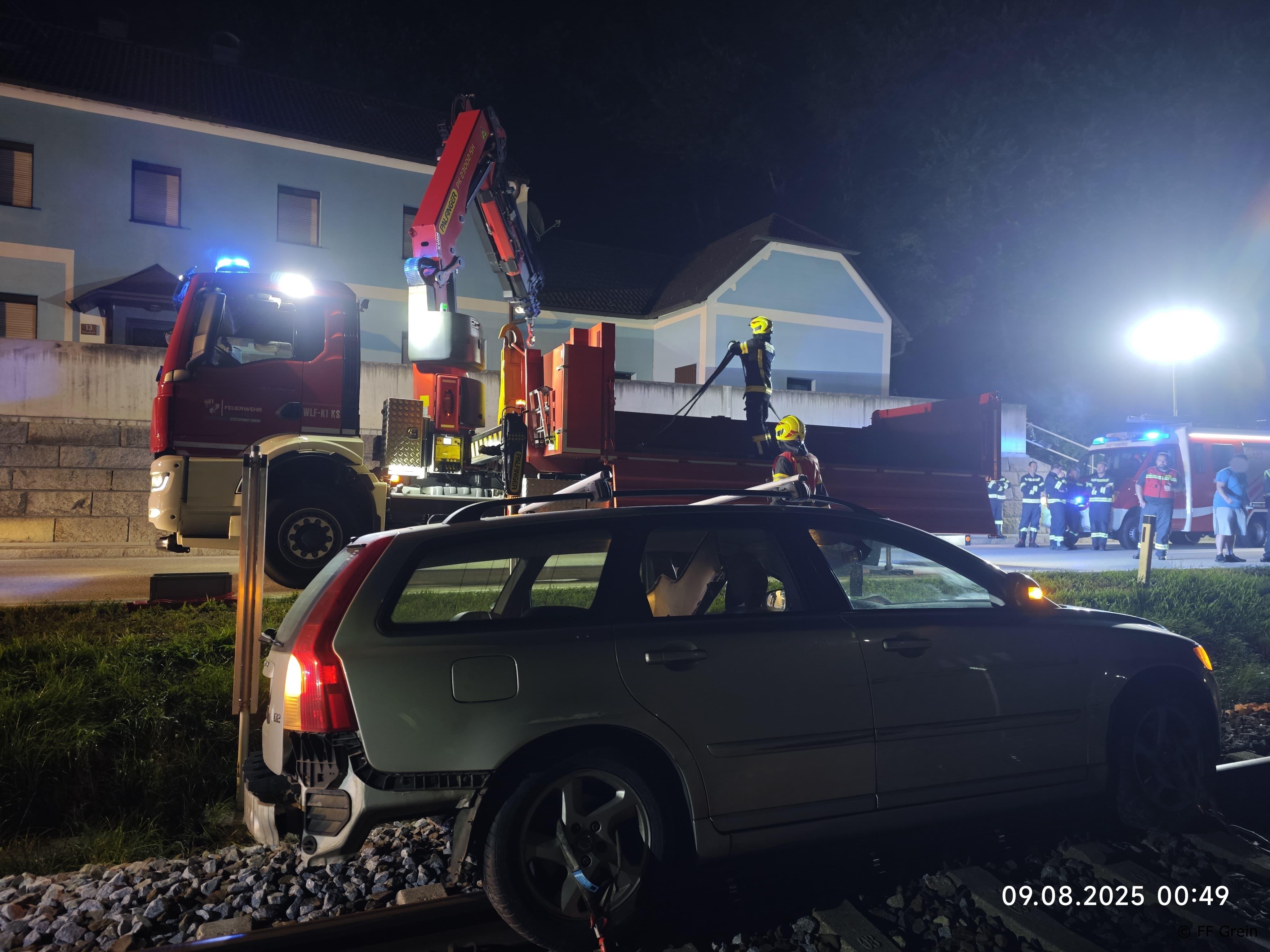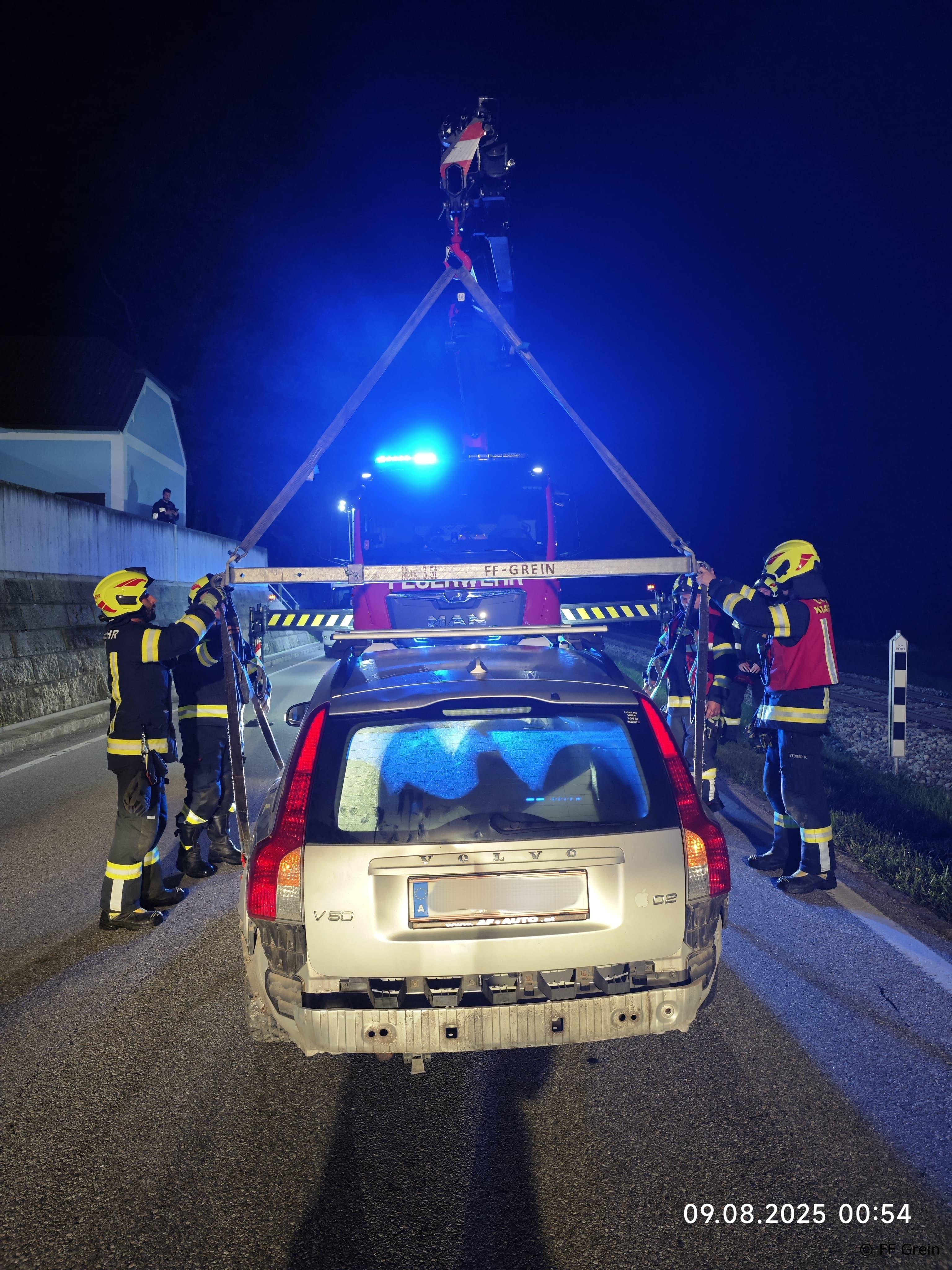 Am Samstag kurz nach Mitternacht wurde die Freiwillige Feuerwehr Grein mit dem Stützpunktfahrzeug WLF-K1-KS von der FF-Saxen nachalarmiert.Die Infos auf den Personenrufempfängern lautete: „WLF wird benötigt - PKW auf den Schienen“. Sofort machten sich das WLF-K1-KS und das KDO auf den Weg zum Einsatzort. Im Bereich der B3 Donaubundesstraße in der Gemeinde Saxen Höhe Wetzelsdorf kam ein PKW-Lenker von der Fahrbahn ab, und landete mit seinem Fahrzeug auf den Gleisen. Mittels Kran konnte der PKW ohne weiteren Schäden wieder auf die Fahrbahn verbracht werden. Somit war der Einsatz für uns beendet und rückten gegen 01:20 Uhr wieder ins Feuerwehrhaus ein, wo wir die Einsatzbereitschaft wieder herstellten. Weitere Einsatzkräfte: Freiwillige Feuerwehr Saxen Freiwillige Feuerwehr Reitberg Polizei Grein ÖBB-Einsatzleiter
