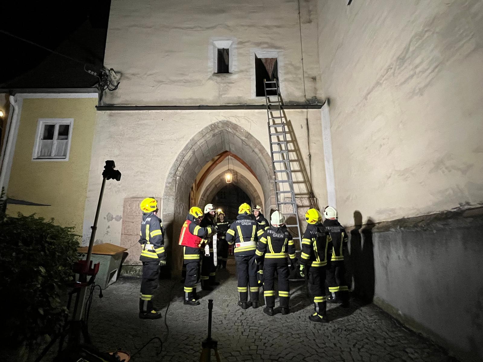 Am 20.03.2026 um 19:00 Uhr fand eine Übung der Freiwilligen Feuerwehr Grein bei der Stadtpfarrkirche Grein statt. Übungsannahme waren gleich zwei Einsatzszenarien, die parallel abgearbeitet werden mussten. Im Kellerbereich, genauer im Heizungsraum, wurde eine bewusstlose Person vermutet. Da unklar war, welche Gase ausgetreten waren, rüstete sich ein Atemschutztrupp mit schwerem Atemschutz aus und ging zur Menschenrettung vor. Die Person konnte rasch lokalisiert und anschließend sicher aus dem Gefahrenbereich gebracht werden. Zeitgleich ereignete sich am Dachboden der Stadtpfarrkirche ein weiterer Unfall. Eine Person war bei Arbeiten mehrere Meter von einer Leiter gestürzt und musste schonend gerettet werden. Da ein Zugang über das Gebäudeinnere nicht möglich war, wurde von außen eine Leiter aufgebaut, um in den Dachboden zu gelangen. Die Rettung der verunfallten Person erfolgte mittels Korbschleiftrage über die Leiter. Dabei wurde ein besonderes Augenmerk auf die Absturzsicherung sowie eine patientenschonende Bergung gelegt. Nach erfolgreicher Abarbeitung beider Einsatzszenarien konnte die Übung abgeschlossen werden. Bei der anschließenden Nachbesprechung wurden die gesetzten Maßnahmen analysiert und wichtige Erkenntnisse für zukünftige Einsätze gewonnen. Ein Dank gilt allen Kameradinnen und Kameraden für die engagierte Teilnahme und die professionelle Durchführung der Übung.