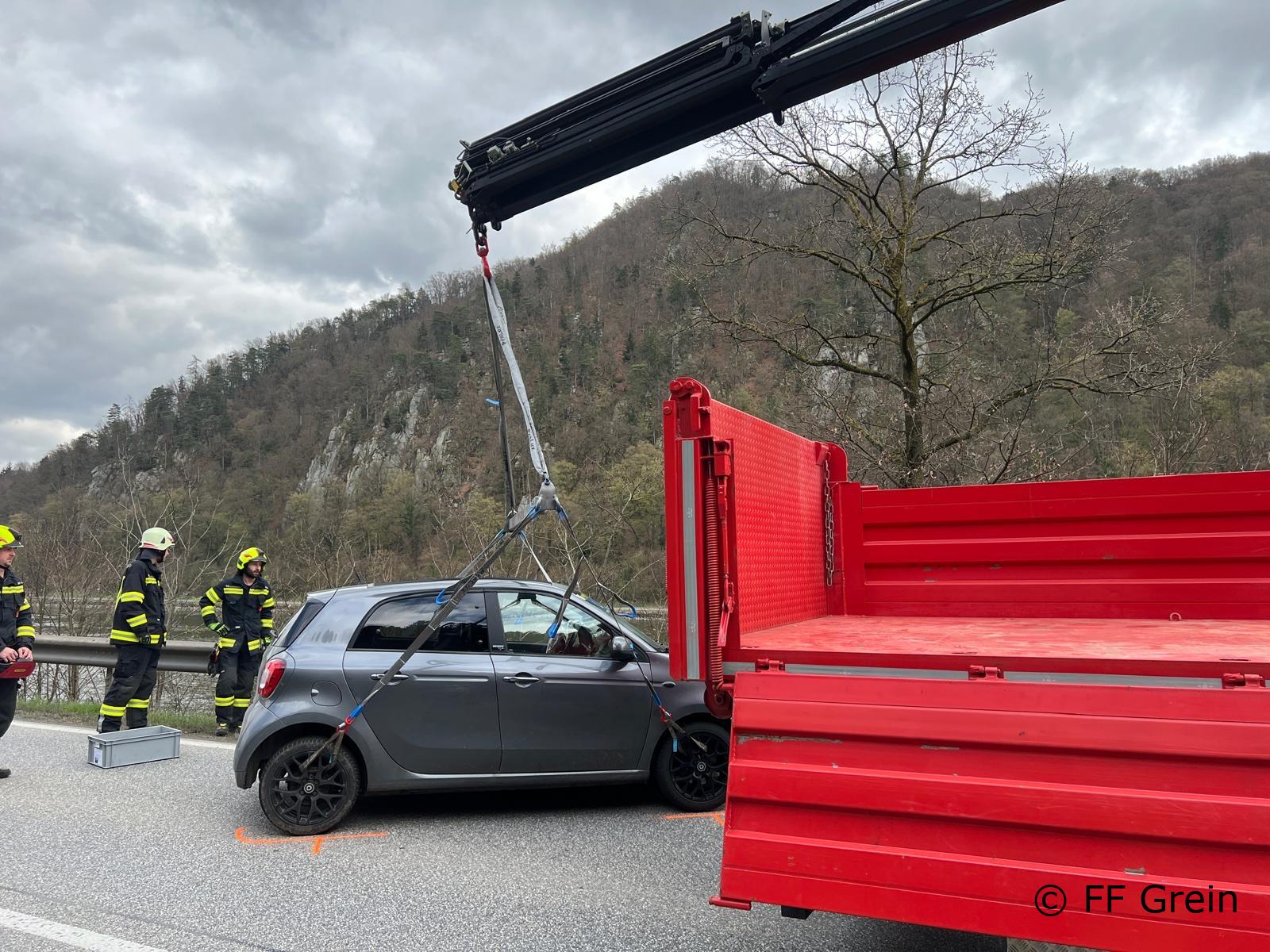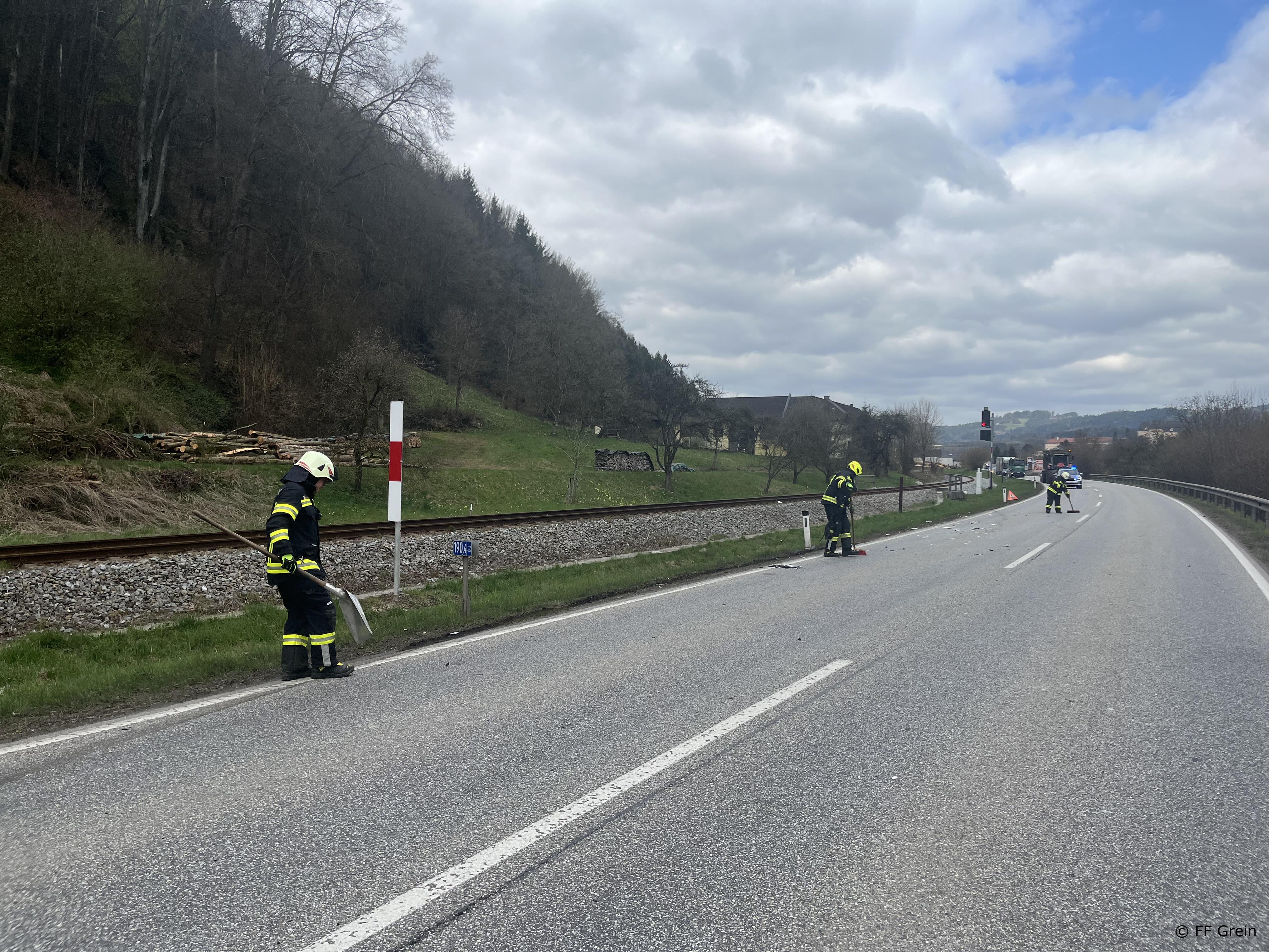 „Verkehrsunfall Aufräumarbeiten“ lautete die Einsatzmeldung für die Kameraden der Freiwilligen Feuerwehr Grein am Mittwoch, den 01. April um 11:24 Uhr. Vor Ort konnte der Einsatzleiter feststellen das die Beteiligten Personen bereits versorgt wurden. Unsere Aufgabe beschränkte sich lediglich auf den Abtransport des PKW’s sowie das Reinigen der Fahrbahn. Nach 50 Minuten konnte die Einsatzbereitschaft wieder hergestellt werden.