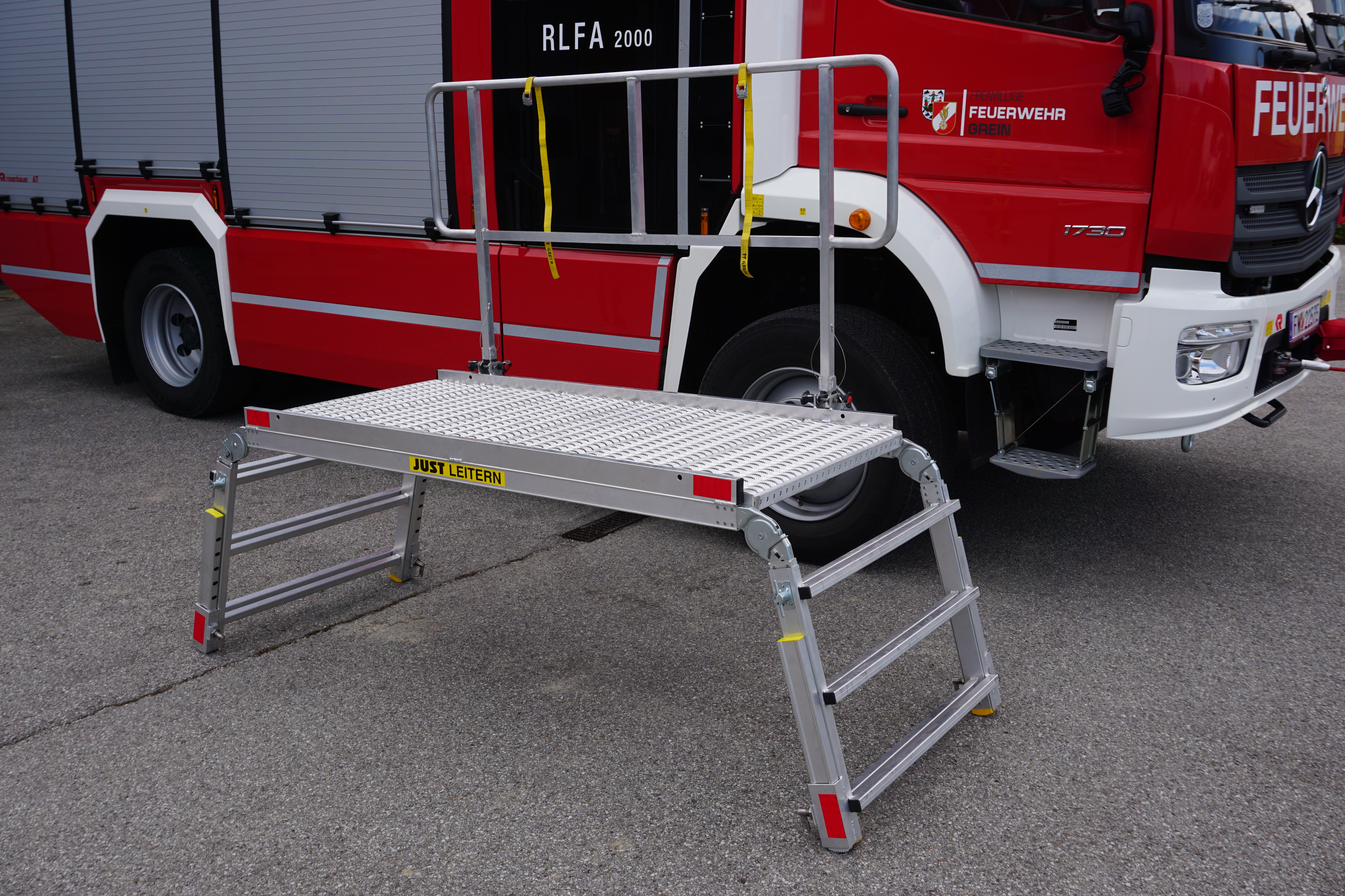 Die Rettungsplattform der Marke Just wurde im Jahr 2021 angekauft. Sie dient als erhöhte Arbeitsplattform. (z.B.: bei Einsätzen mit LKW´s)