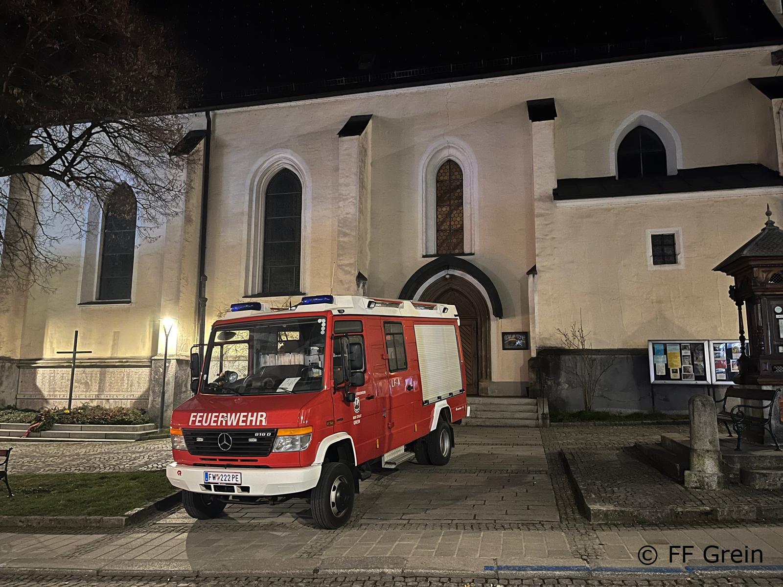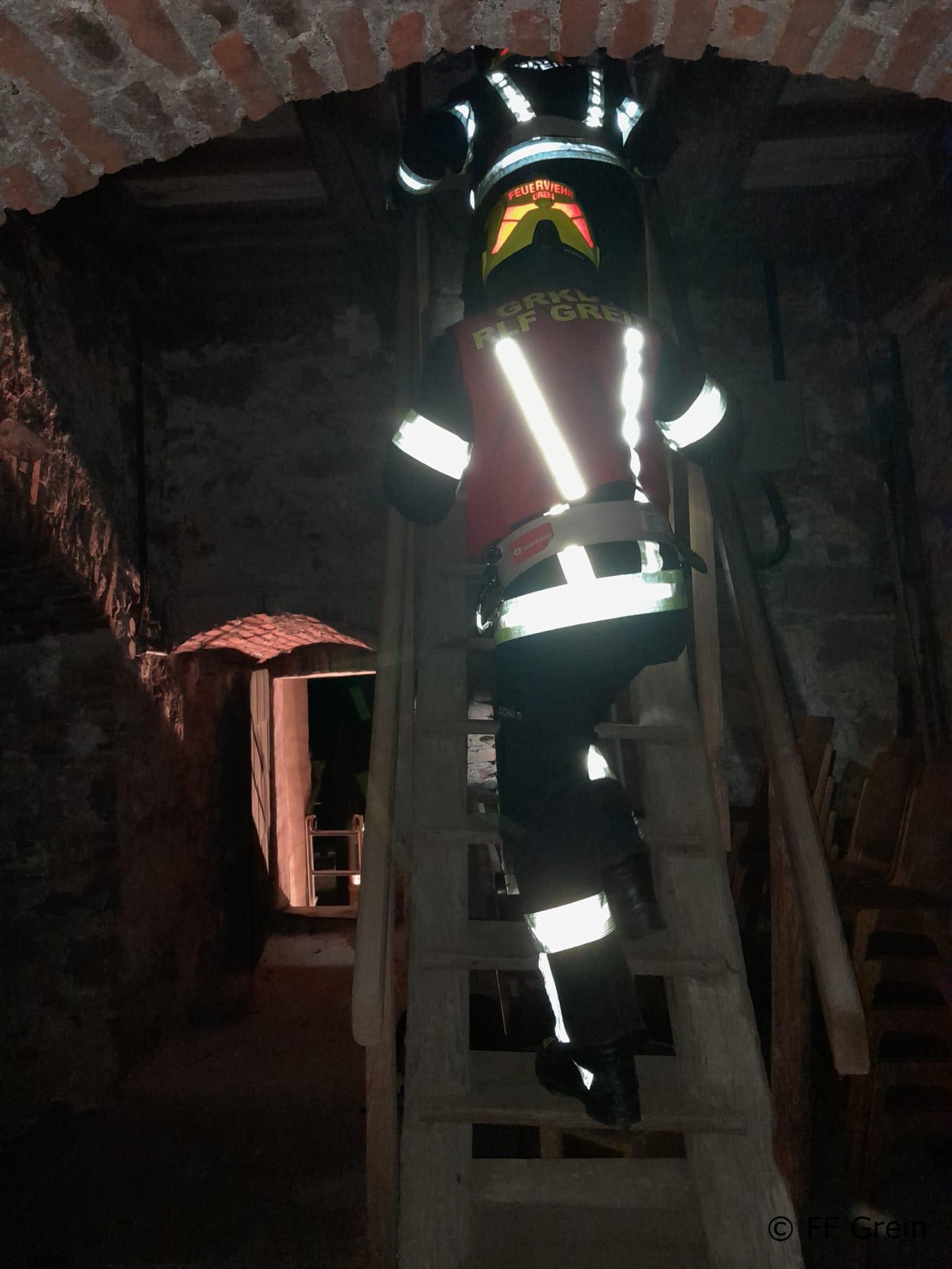 Am 20.03.2026 um 19:00 Uhr fand eine Übung der Freiwilligen Feuerwehr Grein bei der Stadtpfarrkirche Grein statt. Übungsannahme waren gleich zwei Einsatzszenarien, die parallel abgearbeitet werden mussten. Im Kellerbereich, genauer im Heizungsraum, wurde eine bewusstlose Person vermutet. Da unklar war, welche Gase ausgetreten waren, rüstete sich ein Atemschutztrupp mit schwerem Atemschutz aus und ging zur Menschenrettung vor. Die Person konnte rasch lokalisiert und anschließend sicher aus dem Gefahrenbereich gebracht werden. Zeitgleich ereignete sich am Dachboden der Stadtpfarrkirche ein weiterer Unfall. Eine Person war bei Arbeiten mehrere Meter von einer Leiter gestürzt und musste schonend gerettet werden. Da ein Zugang über das Gebäudeinnere nicht möglich war, wurde von außen eine Leiter aufgebaut, um in den Dachboden zu gelangen. Die Rettung der verunfallten Person erfolgte mittels Korbschleiftrage über die Leiter. Dabei wurde ein besonderes Augenmerk auf die Absturzsicherung sowie eine patientenschonende Bergung gelegt. Nach erfolgreicher Abarbeitung beider Einsatzszenarien konnte die Übung abgeschlossen werden. Bei der anschließenden Nachbesprechung wurden die gesetzten Maßnahmen analysiert und wichtige Erkenntnisse für zukünftige Einsätze gewonnen. Ein Dank gilt allen Kameradinnen und Kameraden für die engagierte Teilnahme und die professionelle Durchführung der Übung.