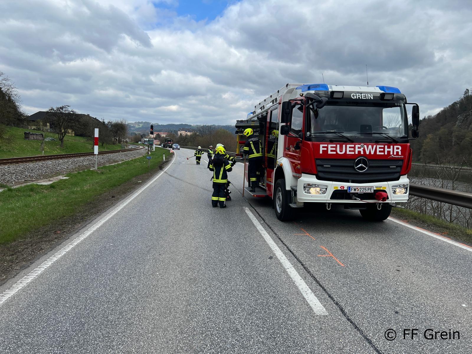 „Verkehrsunfall Aufräumarbeiten“ lautete die Einsatzmeldung für die Kameraden der Freiwilligen Feuerwehr Grein am Mittwoch, den 01. April um 11:24 Uhr. Vor Ort konnte der Einsatzleiter feststellen das die Beteiligten Personen bereits versorgt wurden. Unsere Aufgabe beschränkte sich lediglich auf den Abtransport des PKW’s sowie das Reinigen der Fahrbahn. Nach 50 Minuten konnte die Einsatzbereitschaft wieder hergestellt werden.